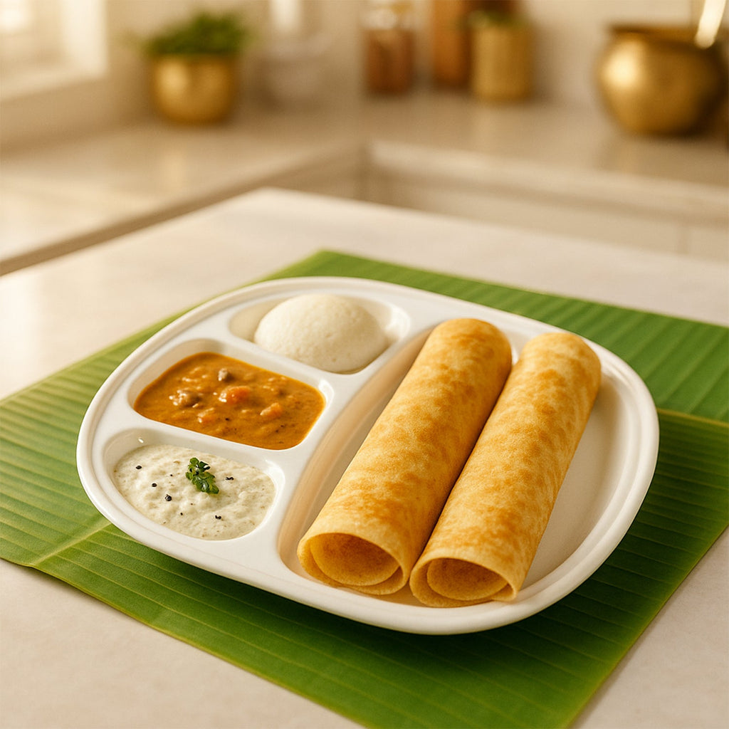 Serve a complete meal neatly in one plate. This large compartment plate features one generous main section for rice/rotis and three smaller sections for sabzi, dal, raita, chutney, or desserts—keeping flavors separated and presentation clean. The rounded-square design with a smooth, glossy finish looks elegant on any table, while the gently raised rim helps prevent spills when carrying food. Built for everyday use in homes, canteens, hostels, and office pantries, the plate is sturdy, break-resistant, easy to wash, and stackable to save storage space. A great choice for thalis, kids’ portioning, and organized meal prep.