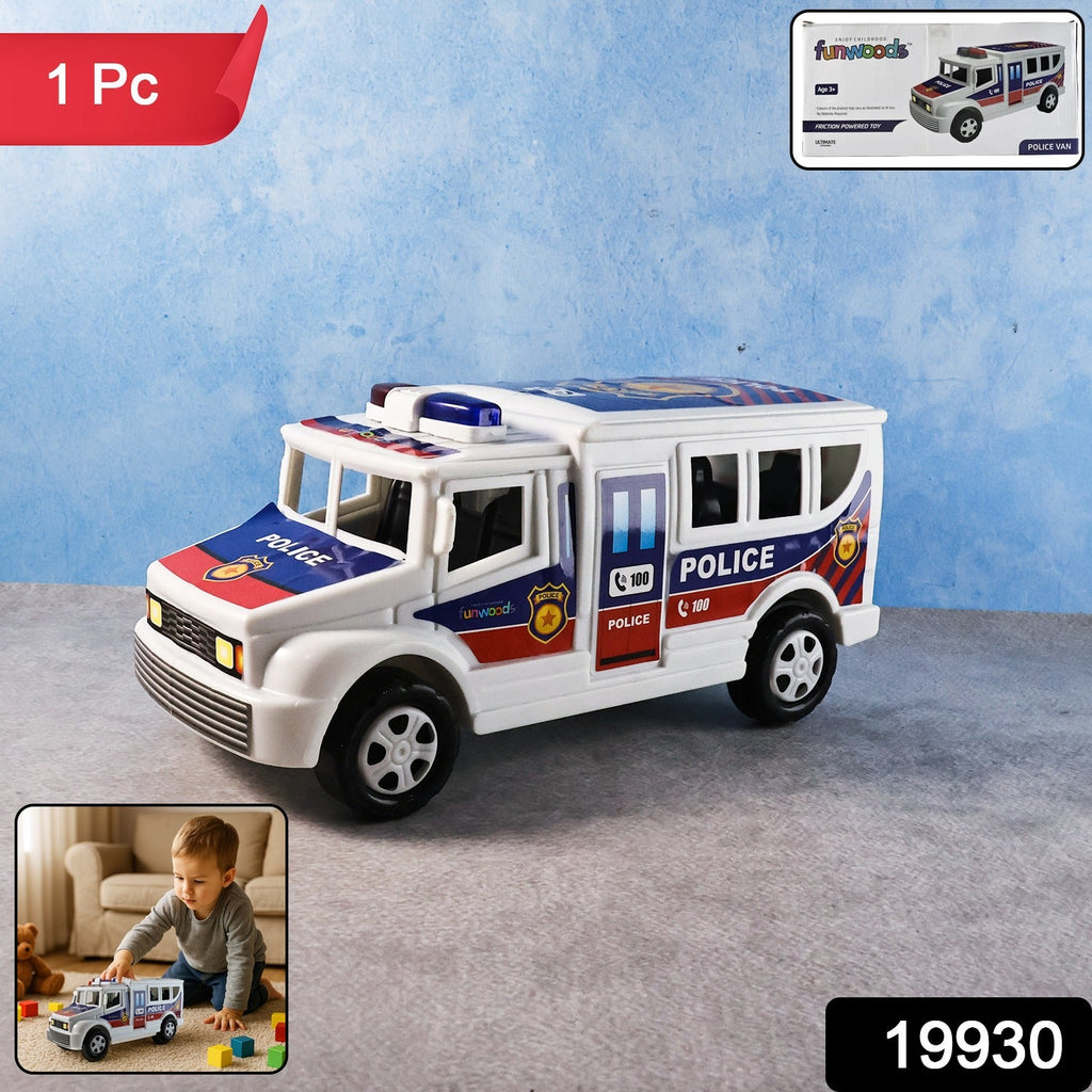 Funwoods police van toy , friction powered police car , police vehicle toy , push and go toy car , realistic police toy , rolling wheels toy , friction toy vehicle , police truck for kids, toddler toy car , boys toy vehicle , durable toy van , pretend play police car , no battery toy car , push car for kids , educational toy vehicle